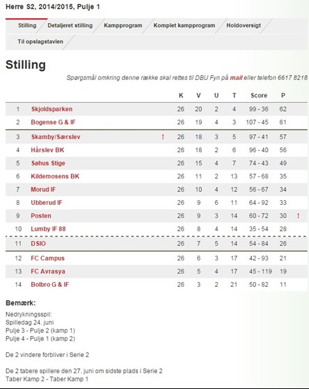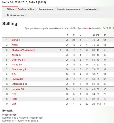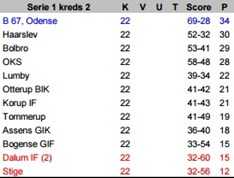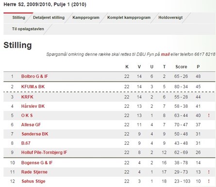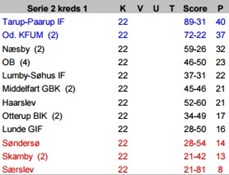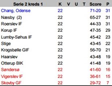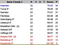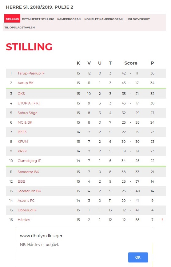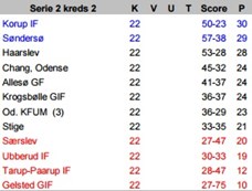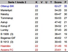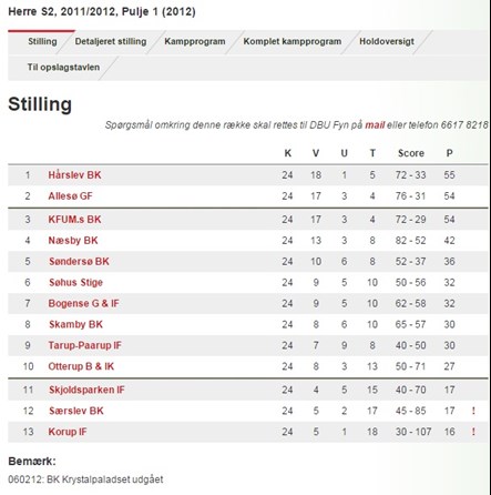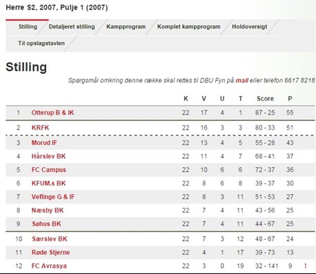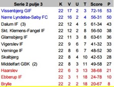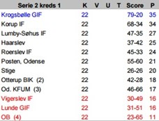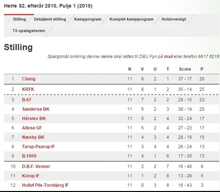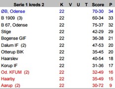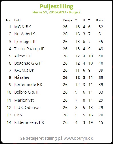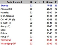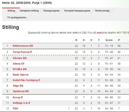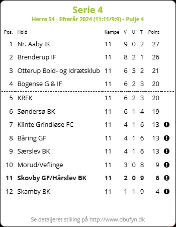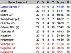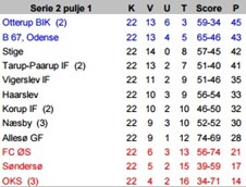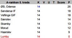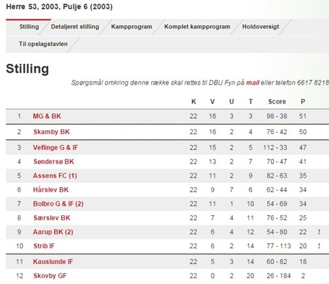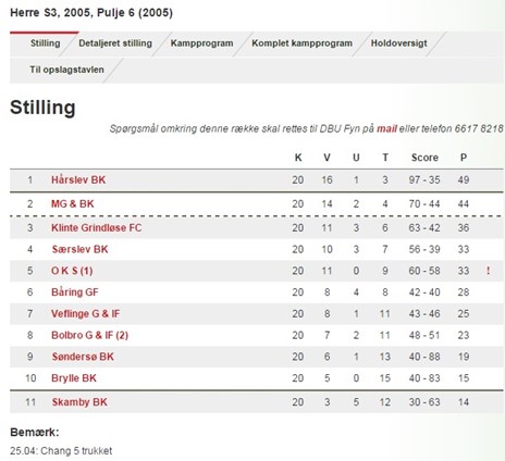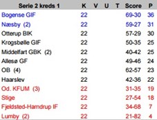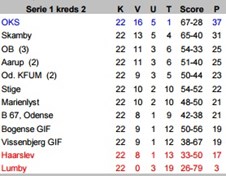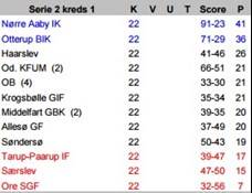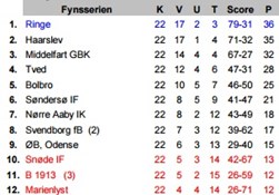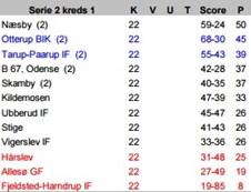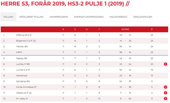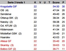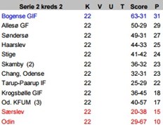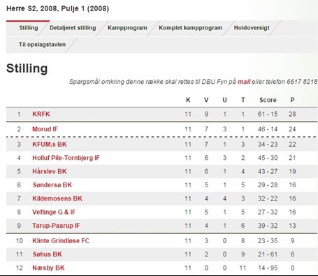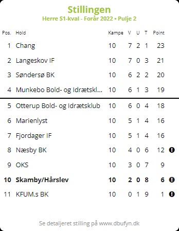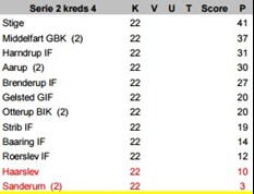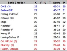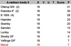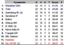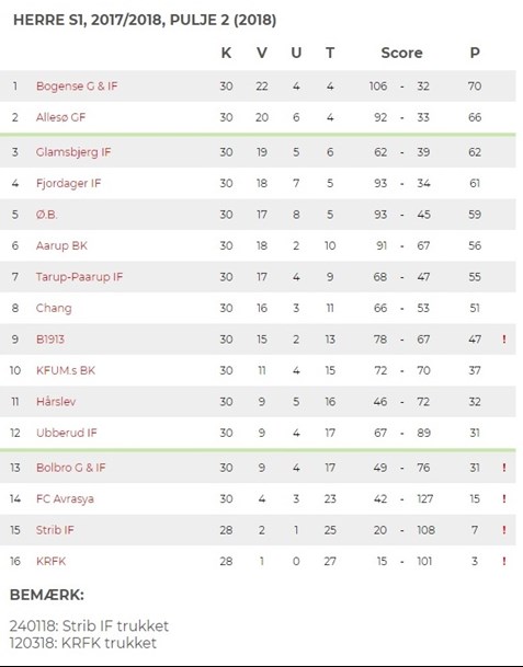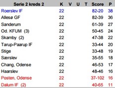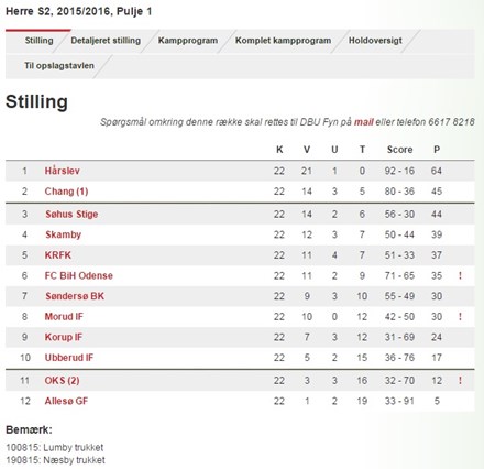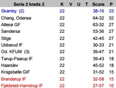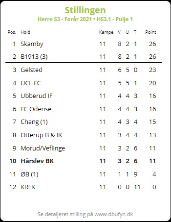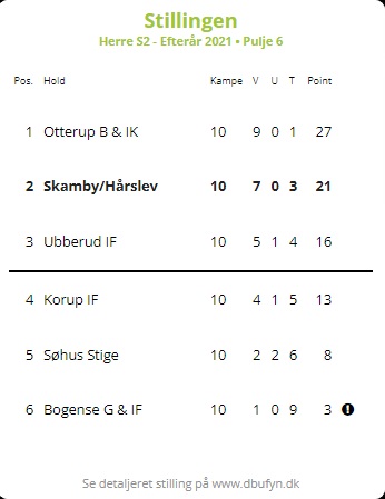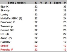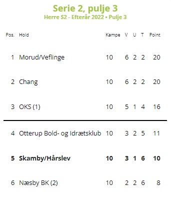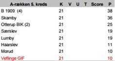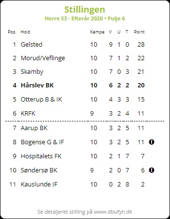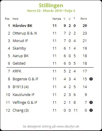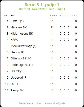 2020 efterår Blev ikke færdigspillet pga. corona/covid19, men slutstillingen blev således