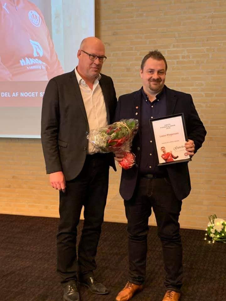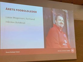 Ved DBU's repræsentantsskabsmøde i Horsens 3. marts 2019 modtog formand for Hårslev Boldklub, Lasse Mogensen prisen som værende
